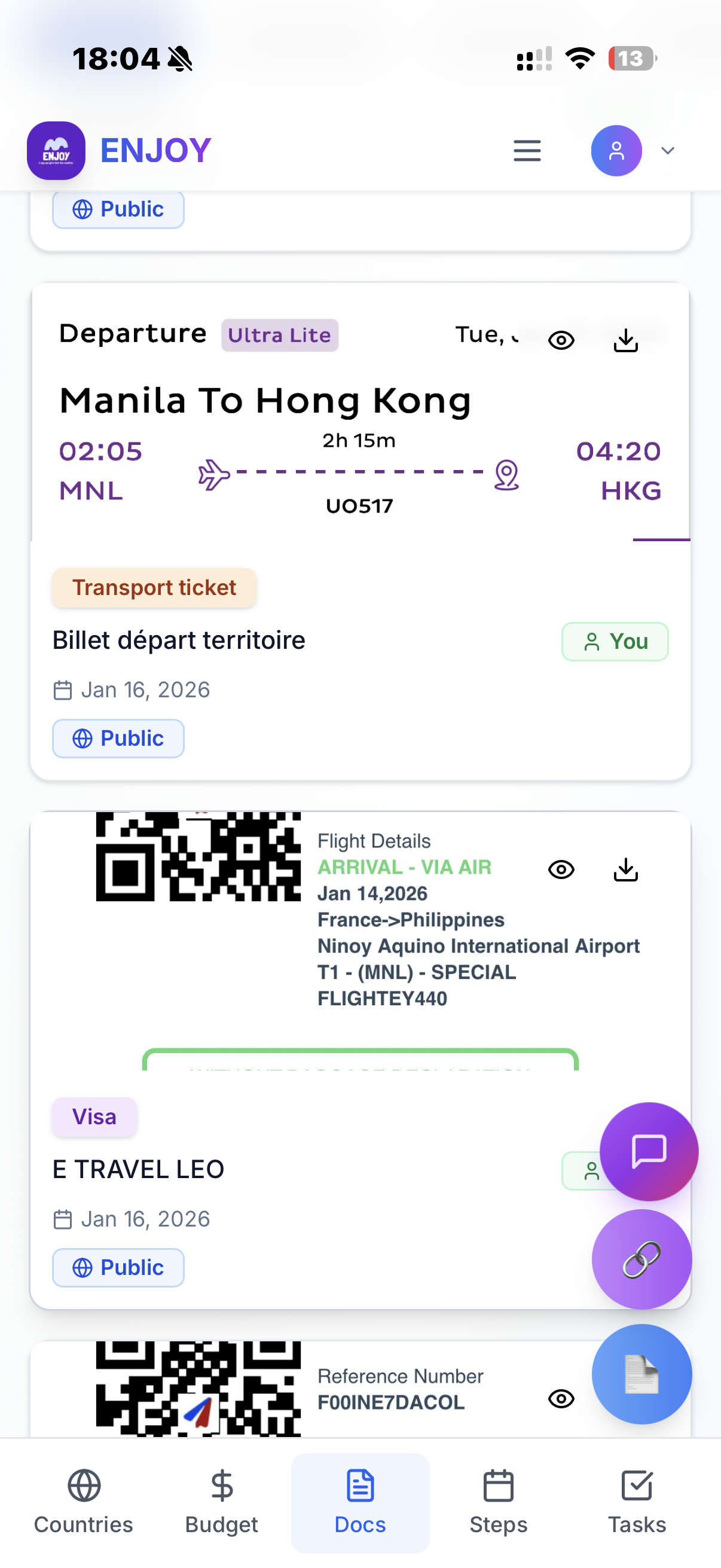 Passeport, visas, assurances — tout est rangé, accessible même hors-ligne, et partageable avec ton groupe.