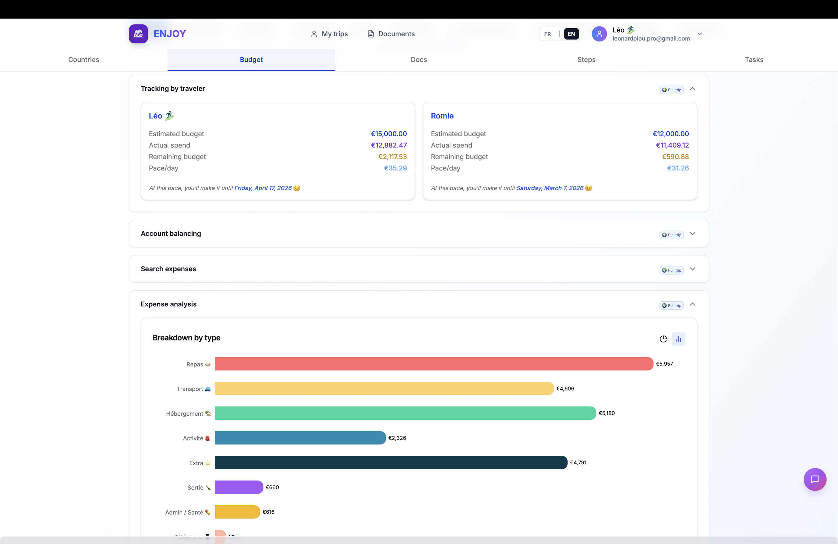 “On a fait 4 semaines à travers la Pologne, la Tchéquie, la Slovaquie et la Hongrie. ENJOY nous a sauvés pour gérer 4 devises différentes et organiser les transports entre chaque pays !”